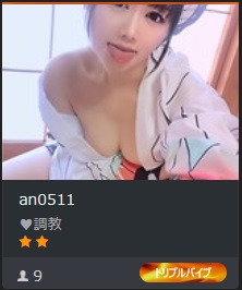 金曜日の夜11時55分、なんと3本ものバイブでイカされている杏ちゃんを発見。トリプルバイブはやはり人気者の証であり、しかも調教中となれば入らないわけにはいきません。