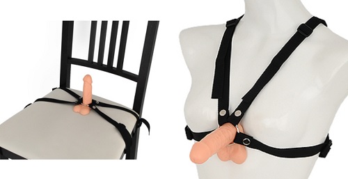 上記した「アジャスタブルハーネス」よりもベルト部が長く、取り回して固定できそうな物があればディルドを生やすことができる商品です。リングにベルトが付属されているだけの簡素な作りですが、イスやクッションといったディルドの吸盤がくっつかない部分への固定のほか、下半身や上半身、頭や太ももといったありえない場所にもアイデアの数だけ装着して使えます。